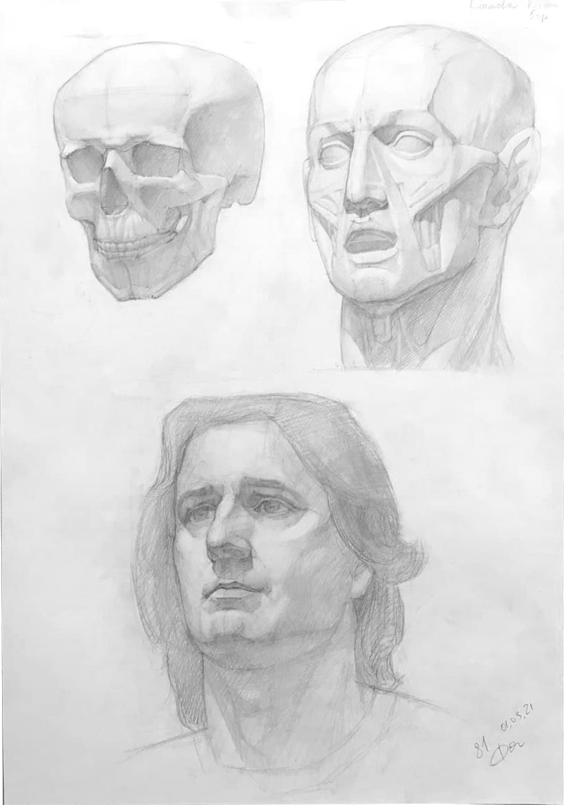 The Scull and The Head, pencil, A2