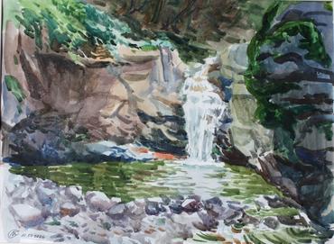 Chivchavi river waterfall, Georgia Watercolor on paper, 37cm x 29cm