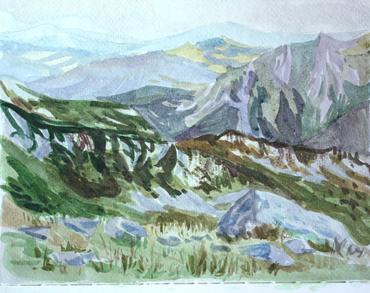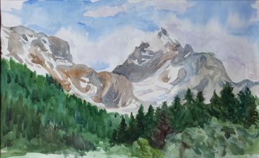 A plein air sketch of the Main Caucasian from Lake Udziro, Racha, Georgia. Watercolor on paper, 28cm x 21cm September, 2024