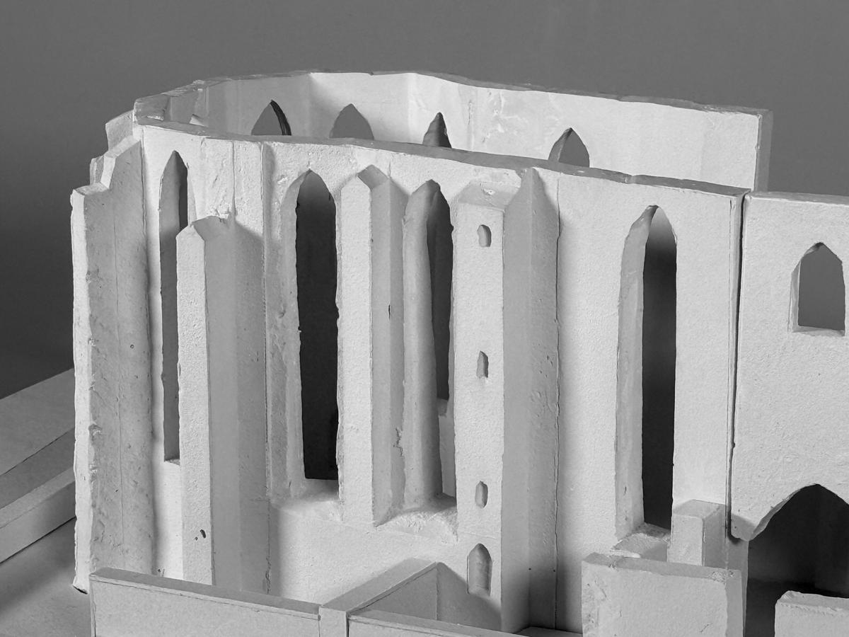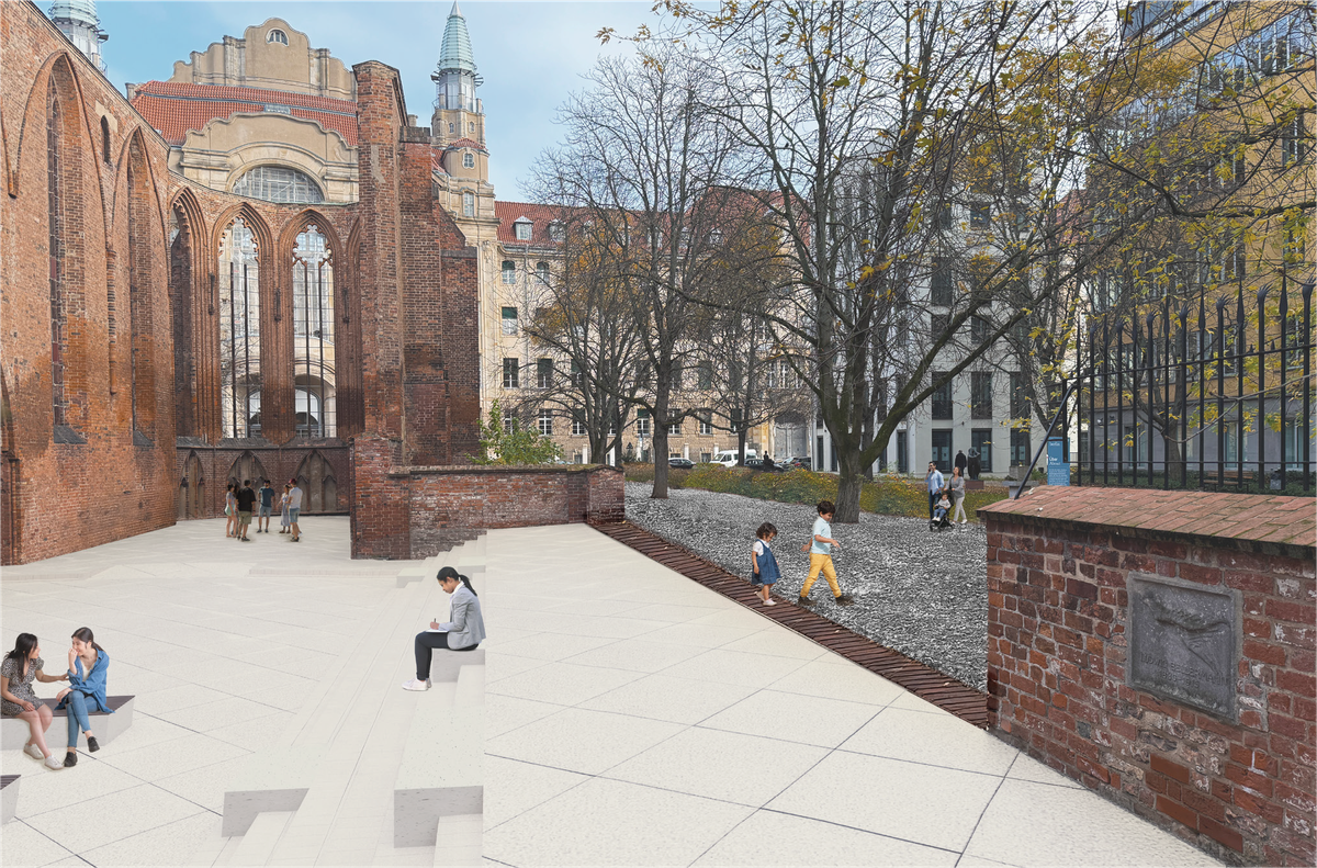 Klosterkirche stands as a preserved ruin in the centre of Berlin, holding centuries of history yet surrounded by an urban space that feels disconnected from its cultural weight. Today, heavy traffic and undefined edges make the monument easy to pass by. Based on historical research, the site was once a monastery church, later a school, before being destroyed during the war.