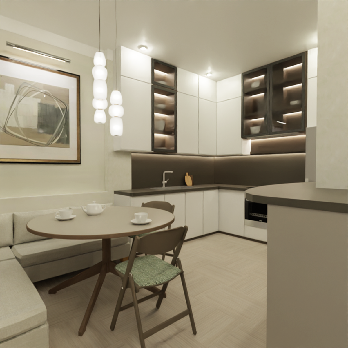 Create a conceptual interior design project for the given residential apartment of 97 sq.m.