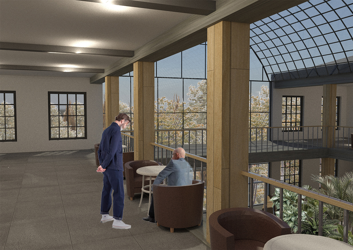 Based on this vision I have chosen brick for exterior siding to create a sense of long-term presence, to make the building a small step in the long evolution of the neighborhood. I decided not to go taller then three stories to retain a cozy atmosphere both inside and outside. A spacious atrium and a winter garden create an interaction between the built space and the outside world in line with the character of the Travellers club.